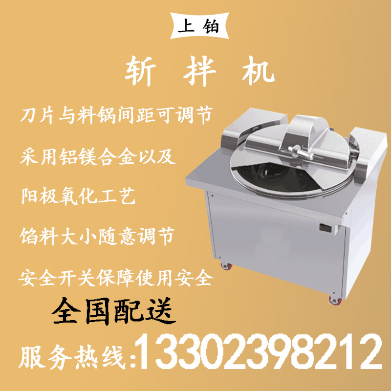 l 斩拌机利用斩刀高速旋转,将肉及辅料在短时间内斩成肉馅或肉泥状,还可以将肉,辅料和水一起搅拌成均匀的乳化物.